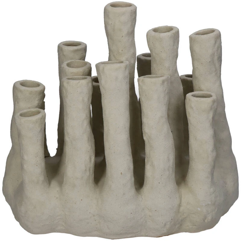 This flower holder XL in coral shape is a bold and unique decorative piece that brings organic charm into any interior. Crafted in an ecru-coloured finish, the vase features multiple narrow spouts that invite playful flower arrangements or dried stems. Its coral-inspired design adds a sculptural touch to your home without overpowering the space. The matte texture and earthy tone make it perfect for natural, boho or coastal interiors, but it also works beautifully as a contrast in modern settings.