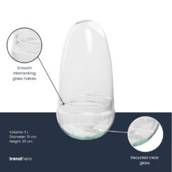 Terrarium Bottle ‘Egg XL’ – Two-part Glass Dome – Closed Terrarium Ø 17.5 Cm ↑ 30 Cm